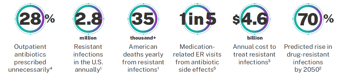 The consequences of this waiting game are significant. Up to 28% of outpatient antibiotics are prescribed unnecessarily,4 and 1 in 5 medication-related emergency room visits stem from antibiotic side effects.5 When providers lack diagnostic certainty, they often default to broad-spectrum antibiotics—a practice that accelerates resistance development and exposes patients to unnecessary risks.
