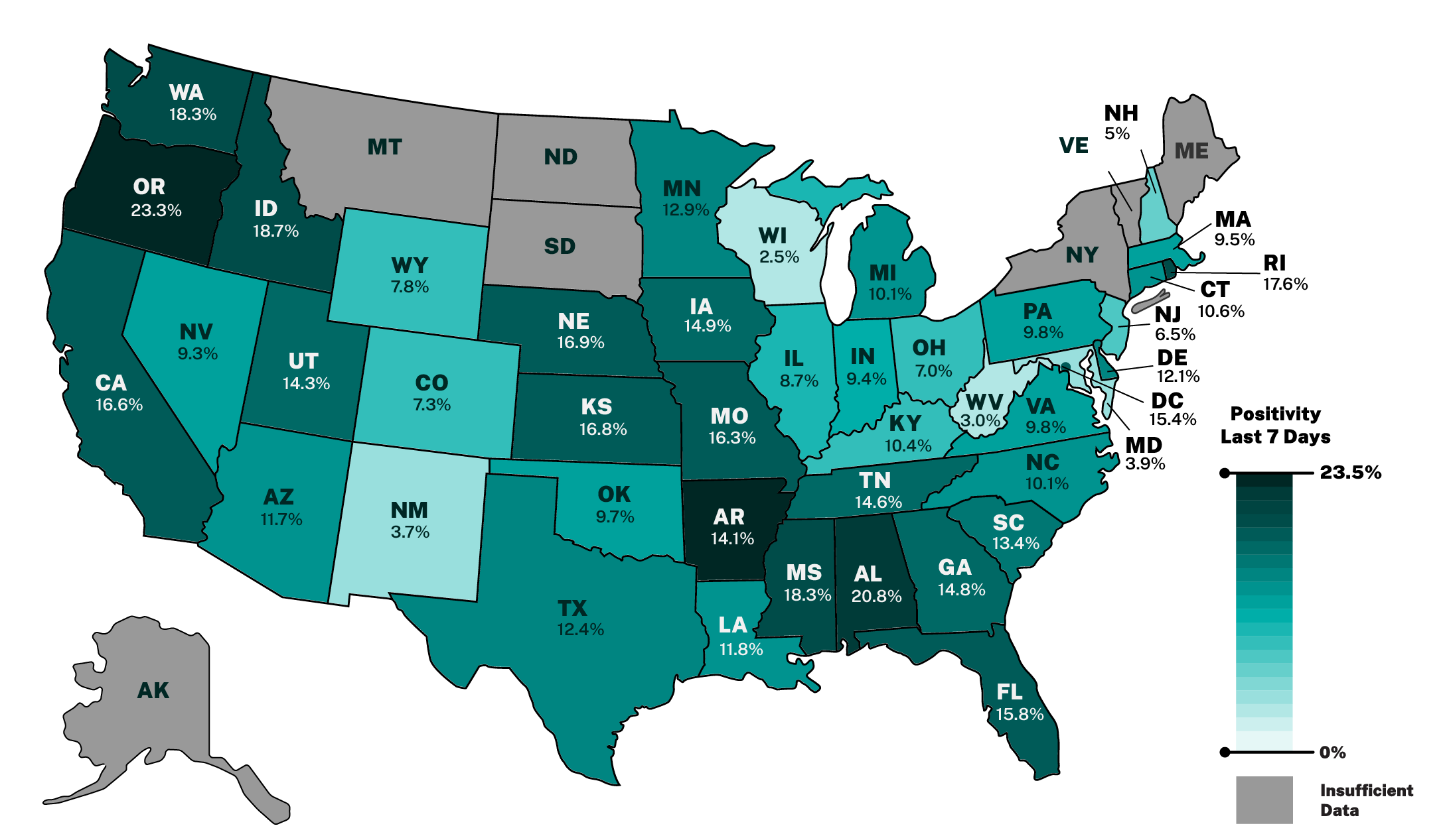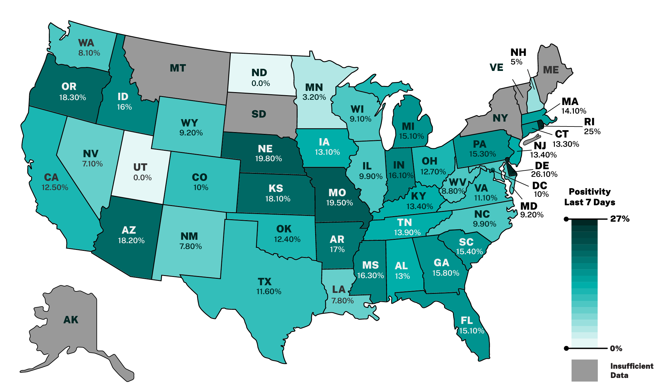This report reflects observed trends in HealthTrackRx testing positivity data, does not convey medical advice, and is provided for informational purposes only. Individuals experiencing respiratory symptoms should consult with their healthcare provider.